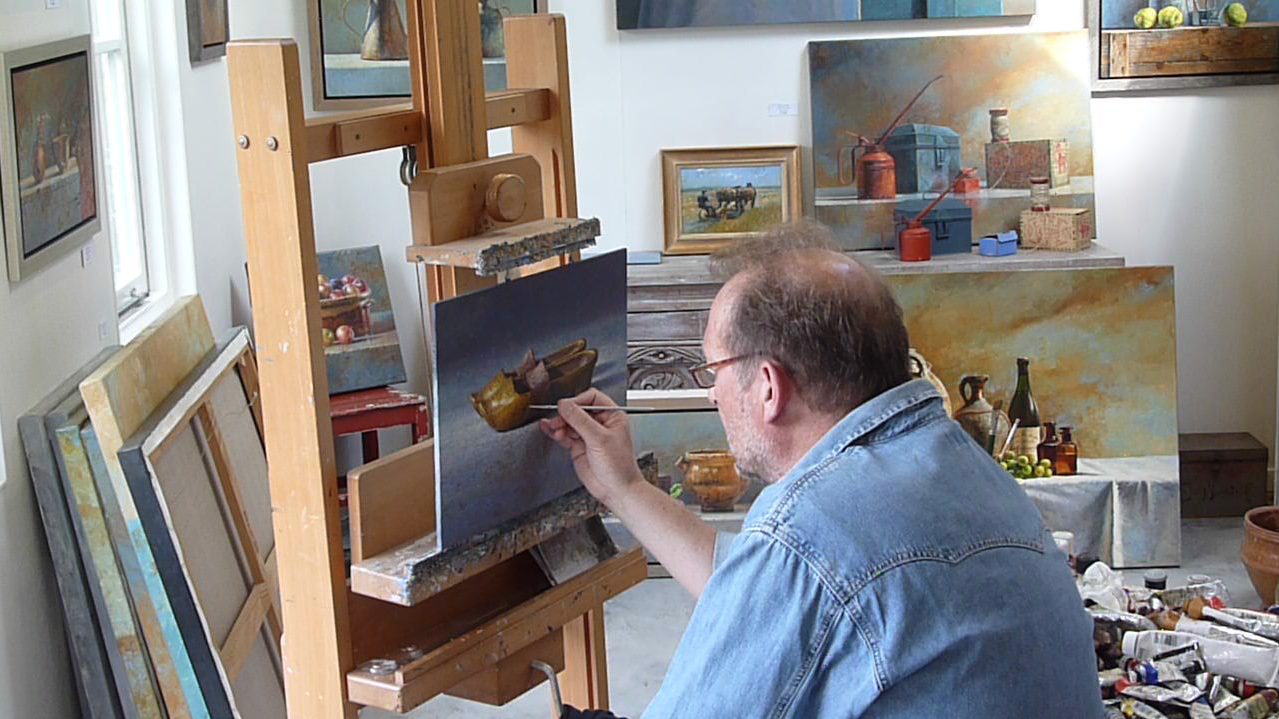 Sinds 1995 heb ik mij voornamelijk toegelegd op het schilderen van stillevens met olieverf. Mijn fascinatie voor structuren werd steeds sterker, door bijna te boetseren met zeer pasteuze olieverf voorzie ik mijn schilderijen van een mooie schildershuid. Door de verf op te brengen met het paletmes heb ik gaandeweg een aparte techniek en eigen stijl ontwikkeld. Eerst gebruikte ik het paletmes alleen voor de achtergronden en later voor het totale beeld, hier en daar wat aangevuld met glaceringen en details (aangebracht met het penseel). Op afstand lijken de schilderijen zeer realistisch maar van dichtbij zie je vlotte toetsjes met soms een impressionistische aanpak, dit geeft het schilderij een bepaalde dynamiek. Het licht en de kleuren geven de schilderijen een warme en zonnige uitstraling die bij de toeschouwer een blij gevoel oproept.