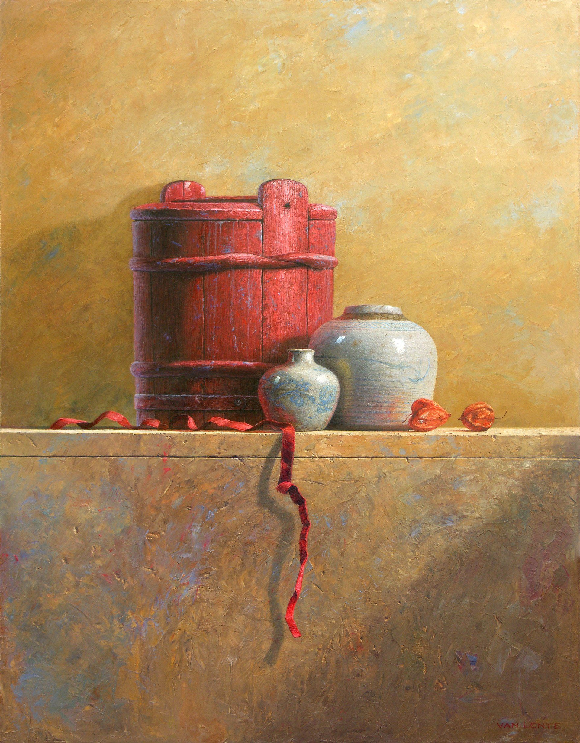 rode ton en chinees aardewerk | olieverf linnen | 90 x 70 cm
