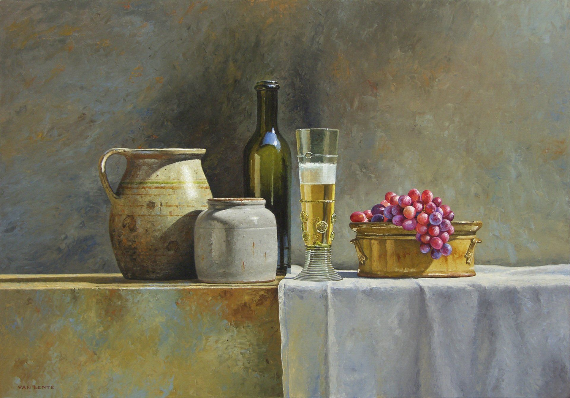 stilleven met drie flessen | olieverf linnen | 90 x 70 cm