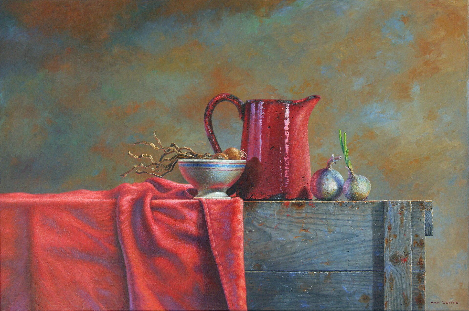 stilleven met rode kan | olieverf linnen | 80 x 120 cm