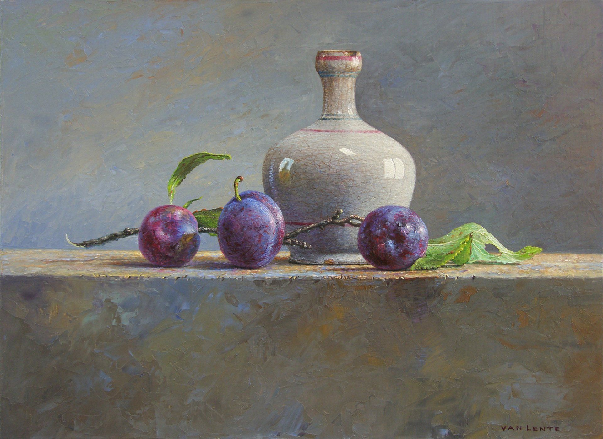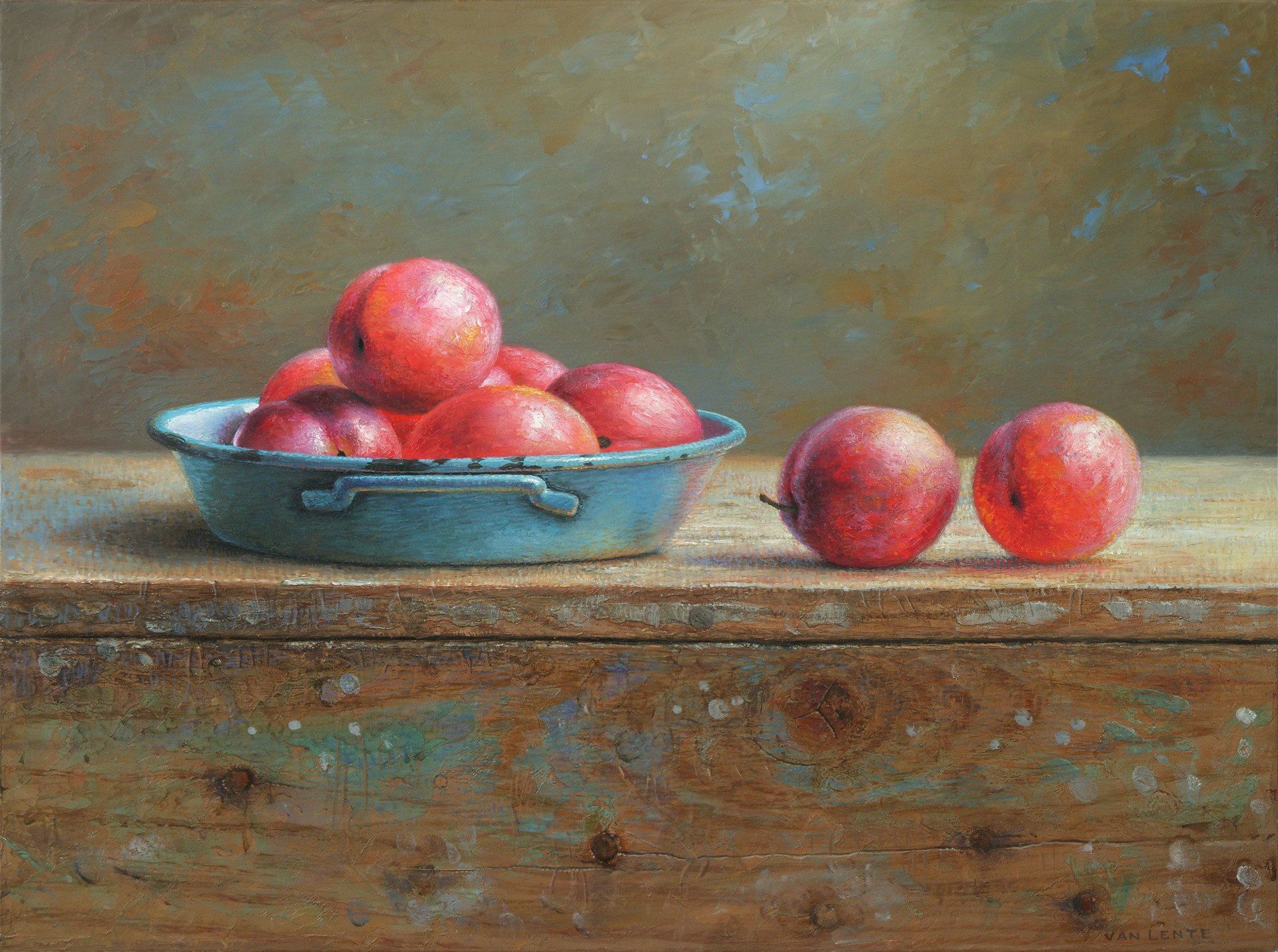 3 pruimen | olieverf paneel | 28 x 38 cm