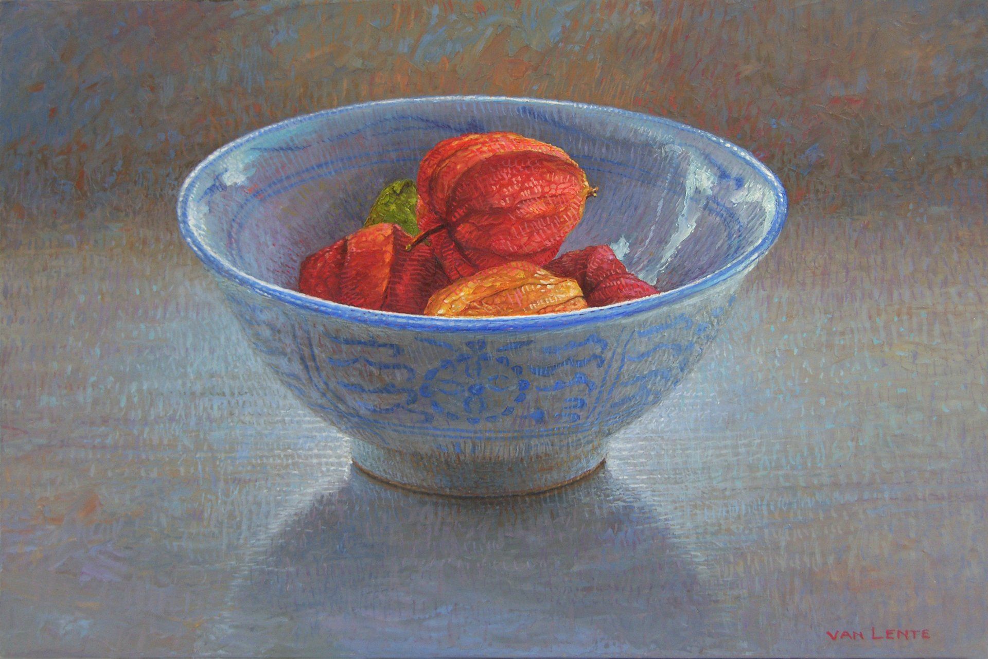 chinese kom met physalis | olieverf op paneel | 30x20 cm