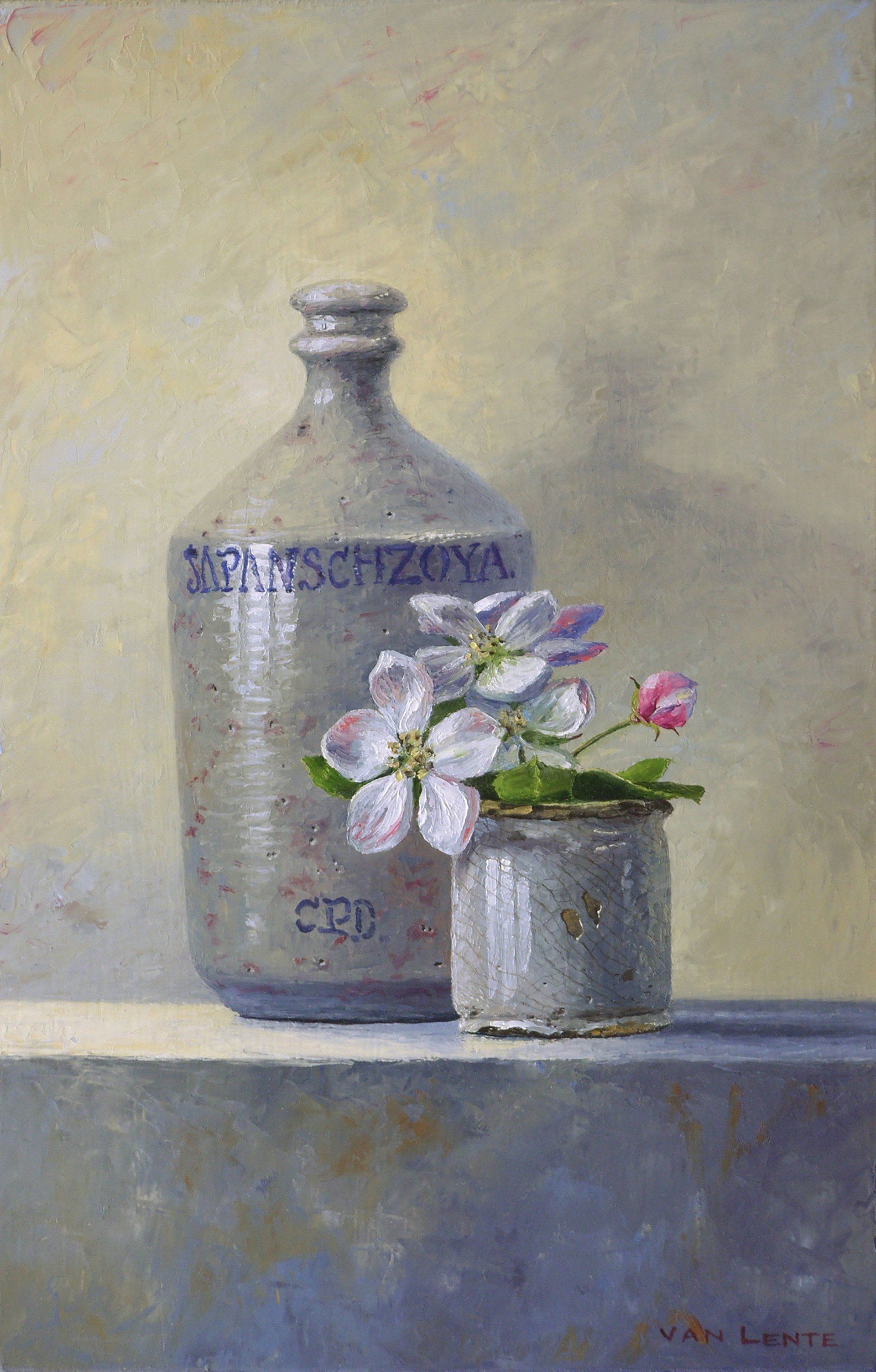 rozenbottels | olieverf paneel | 28 x 38 cm