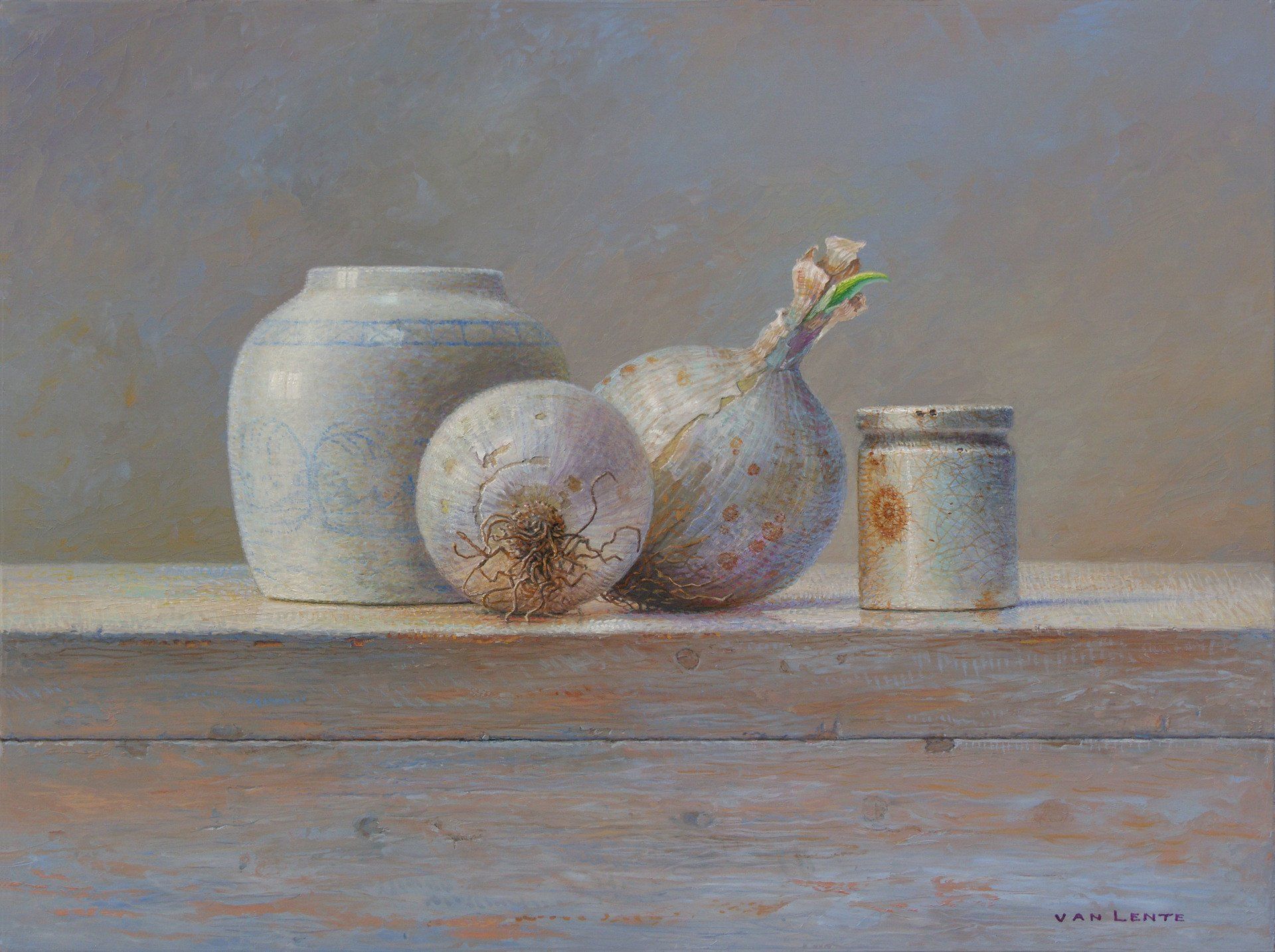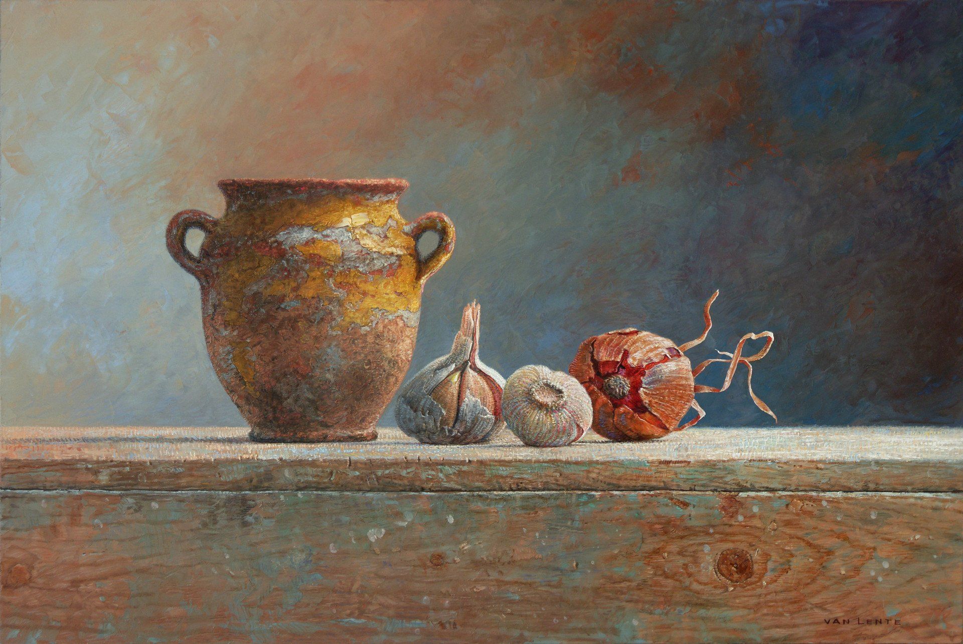 knoflook en ui | olieverf paneel | 40 x 60 cm