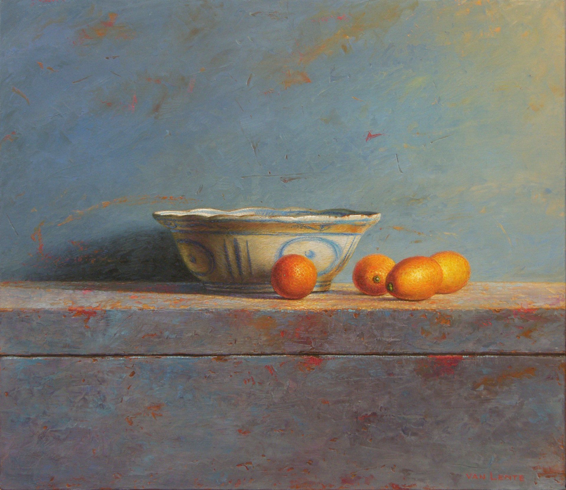 kumquats met kraak porseleinen kom 1573-1619 Ming-dynastie | olieverf paneel | 38 x 43 cm