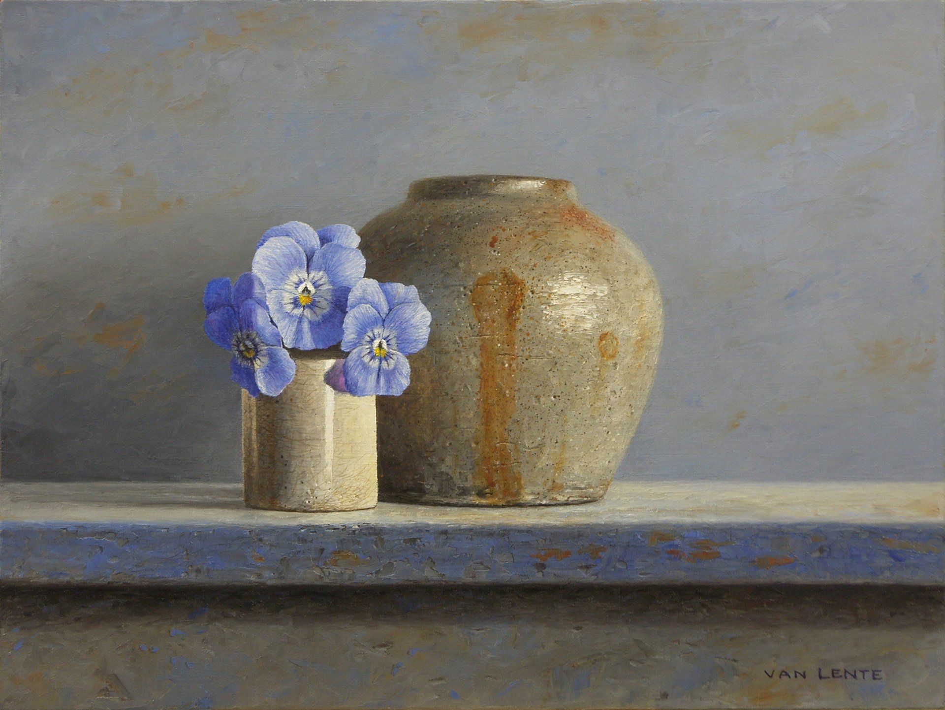 stilleven met blauwe viooltjes | olieverf paneel | 30 x 20 cm