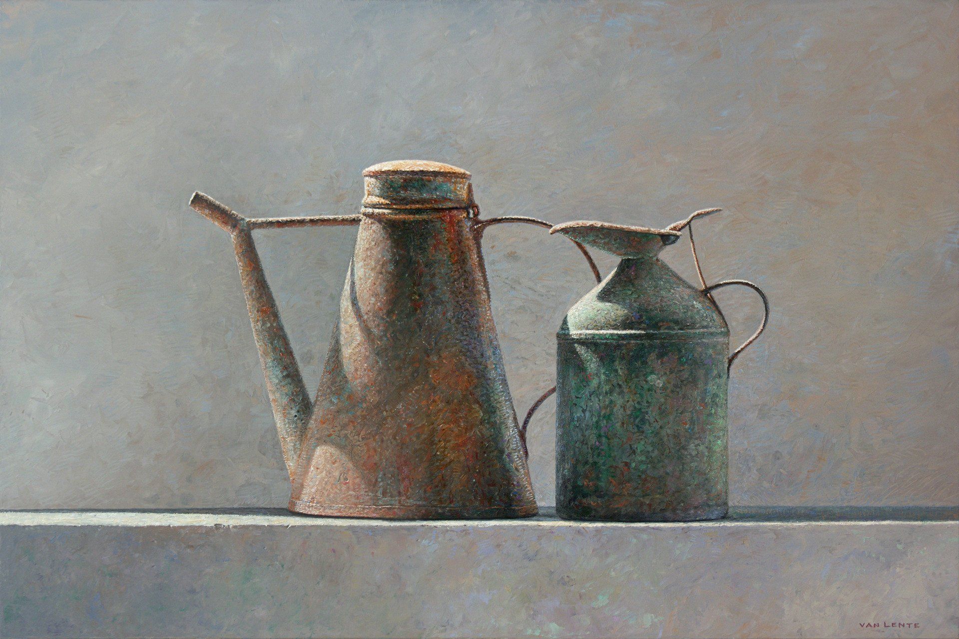 drie oliekannen | olieverf paneel | 40 x 60 cm