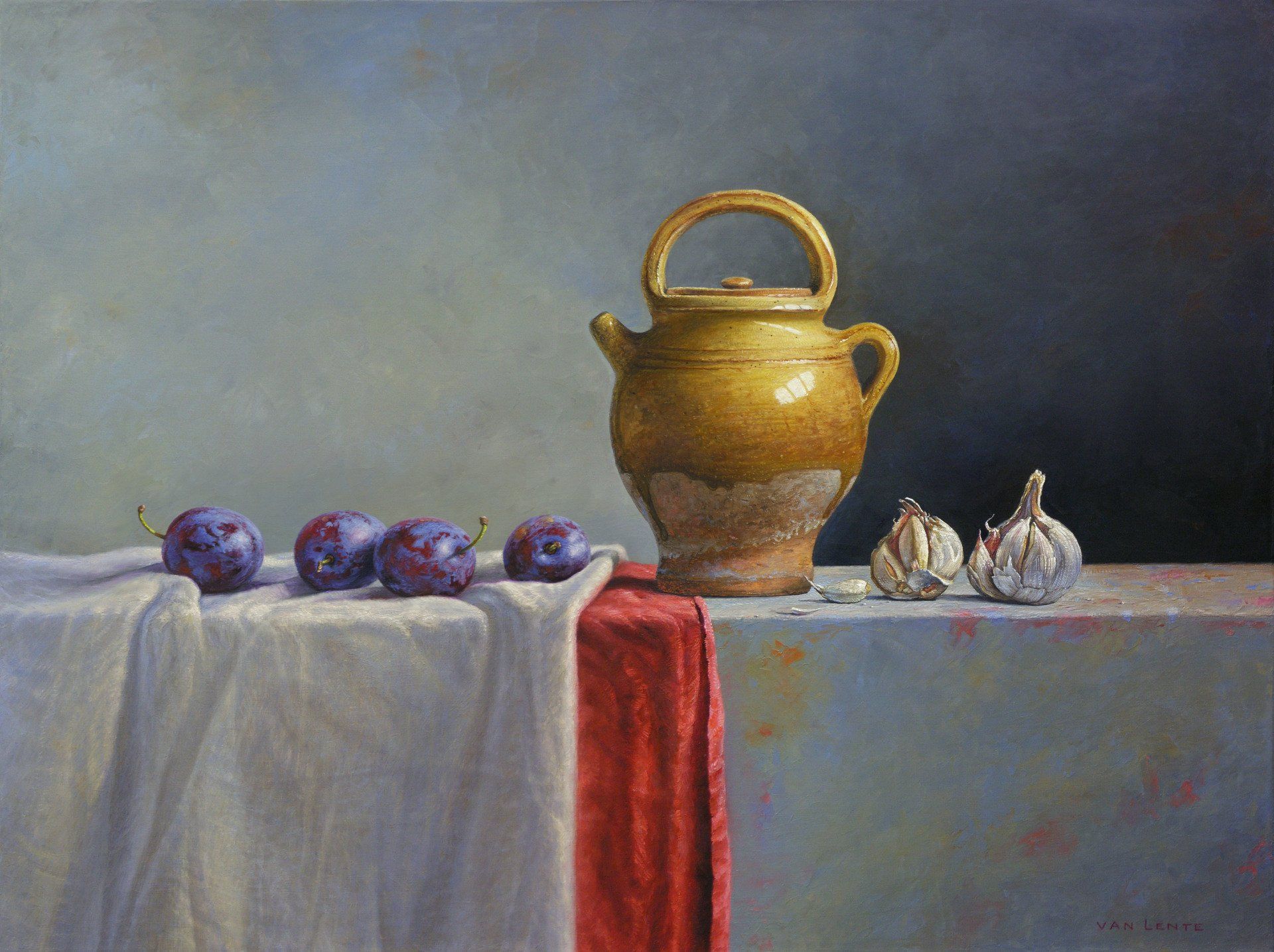 oliekruik en knoflook | olieverf linnen | 60 x 80 cm