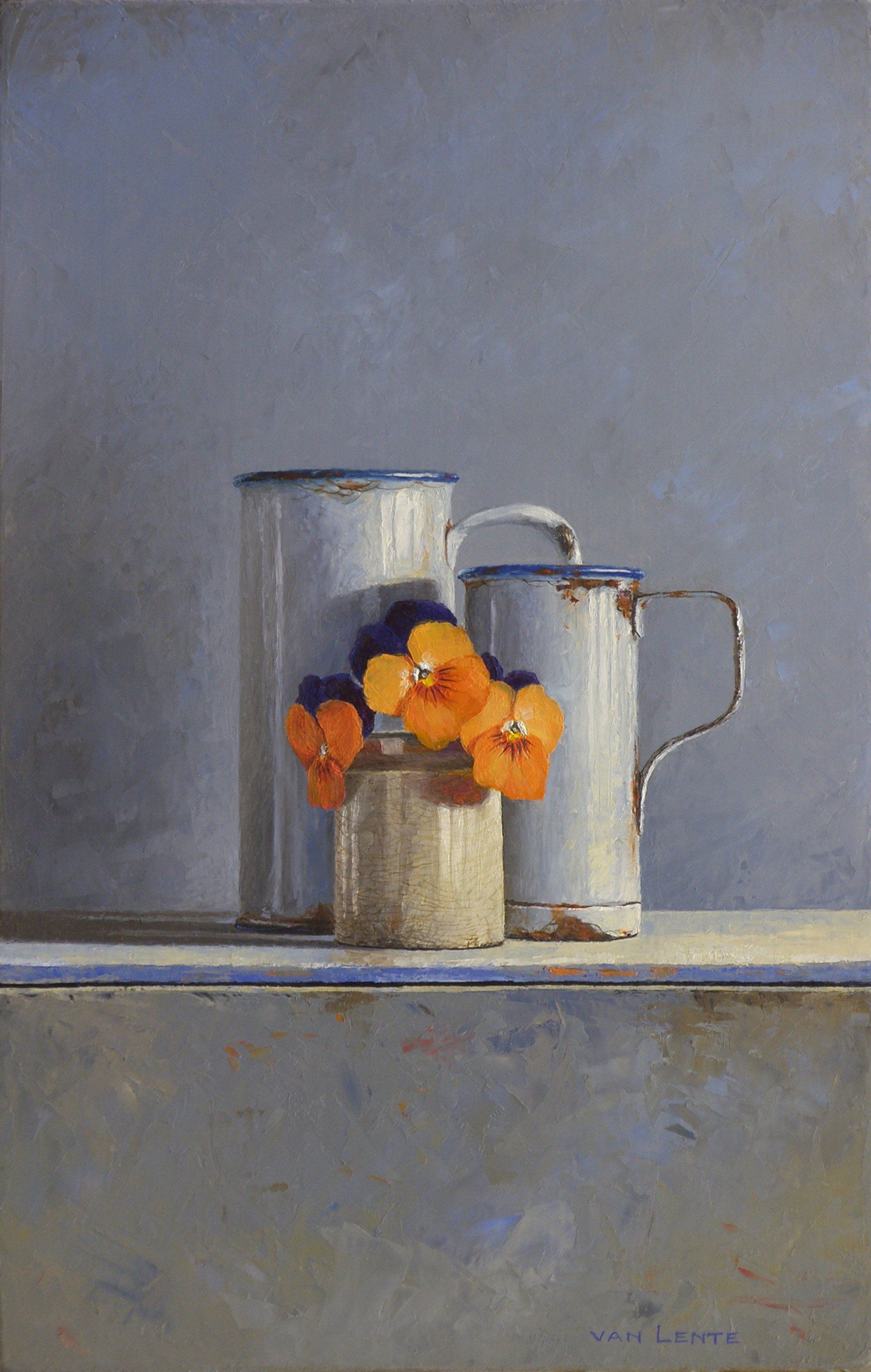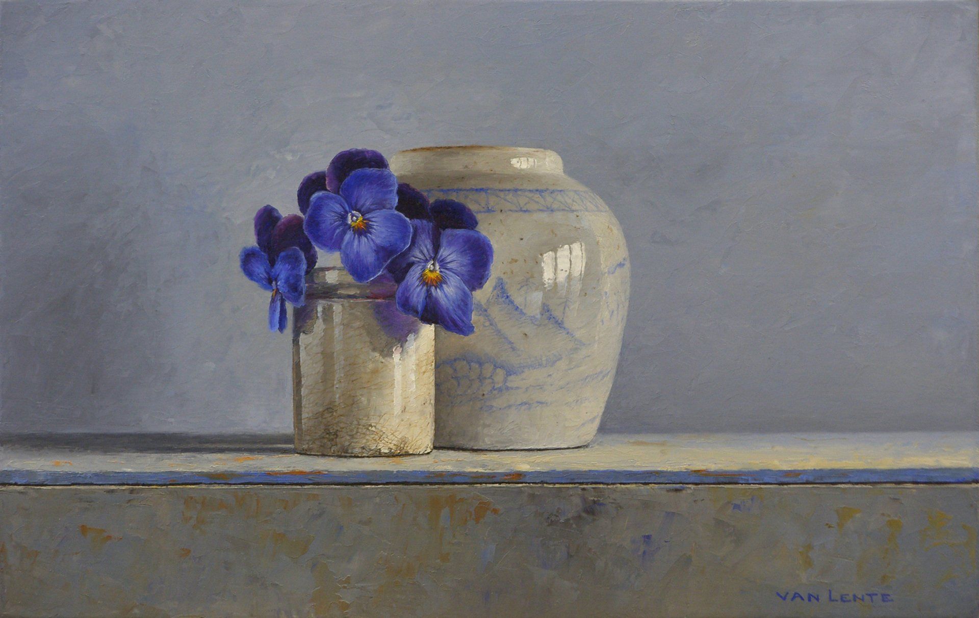 stilleven met blauwe viooltjes | olieverf paneel | 30 x 20 cm