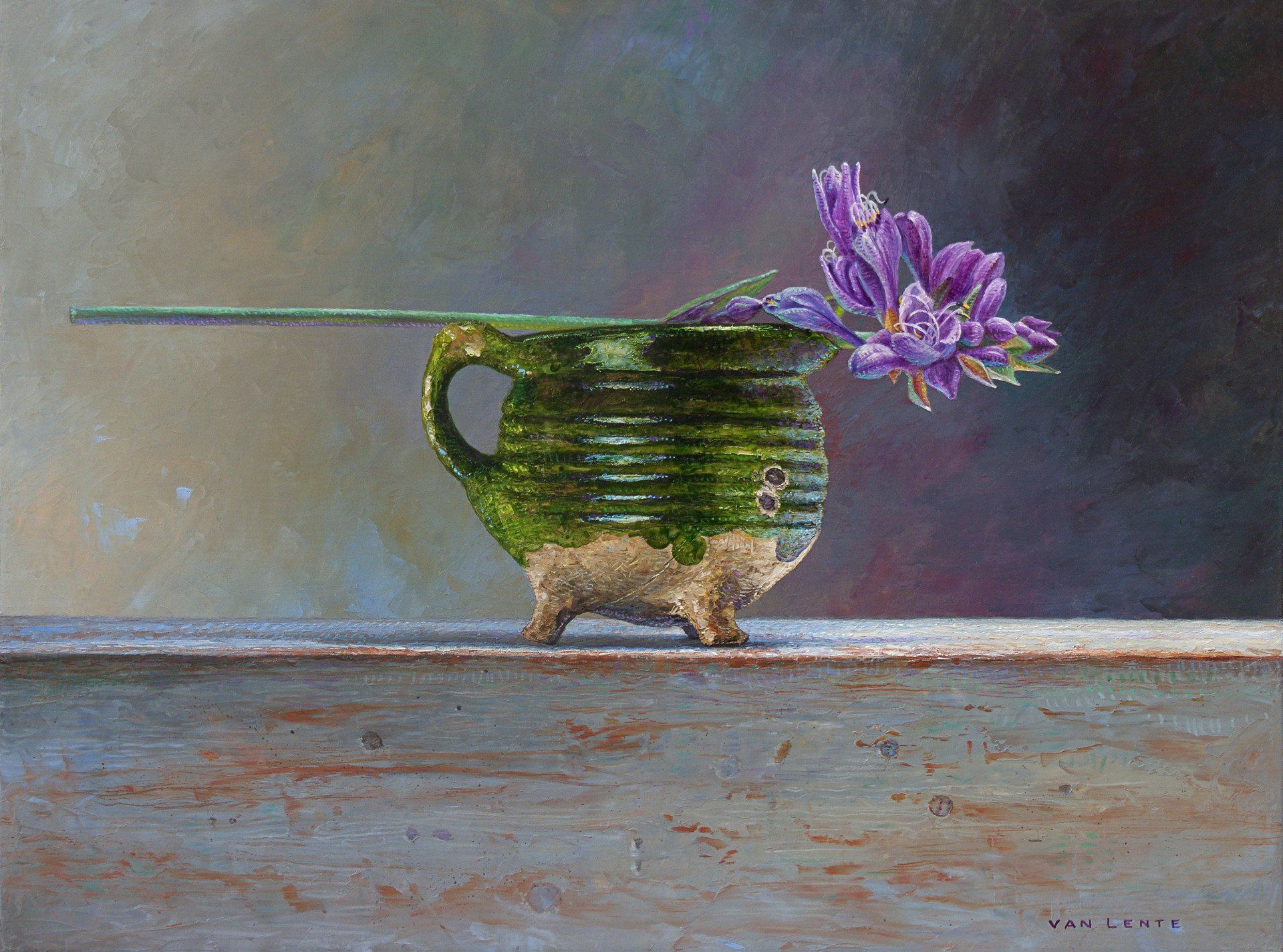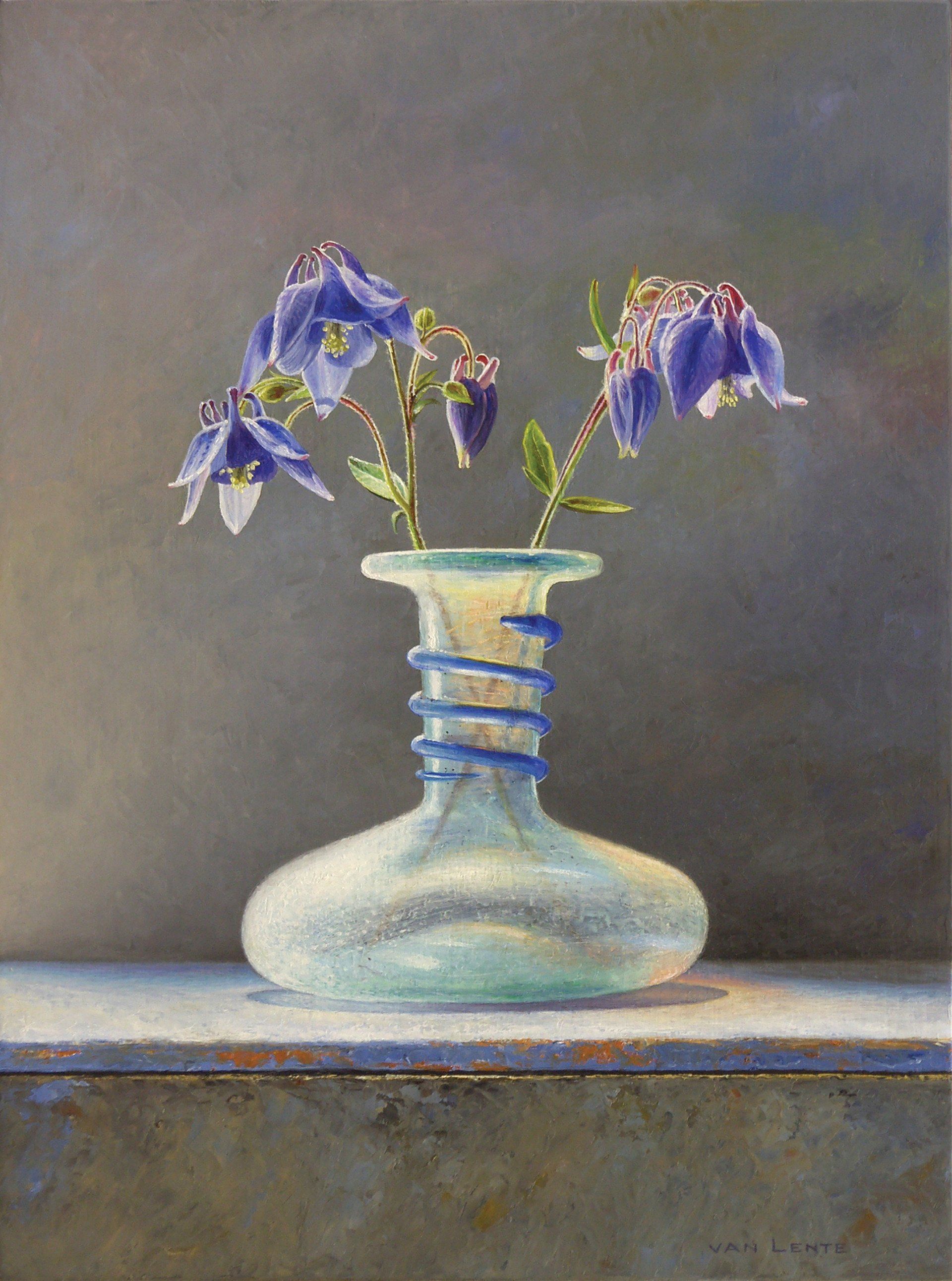 stilleven met wilde Akelei | olieverf paneel | 34 x 22 cm