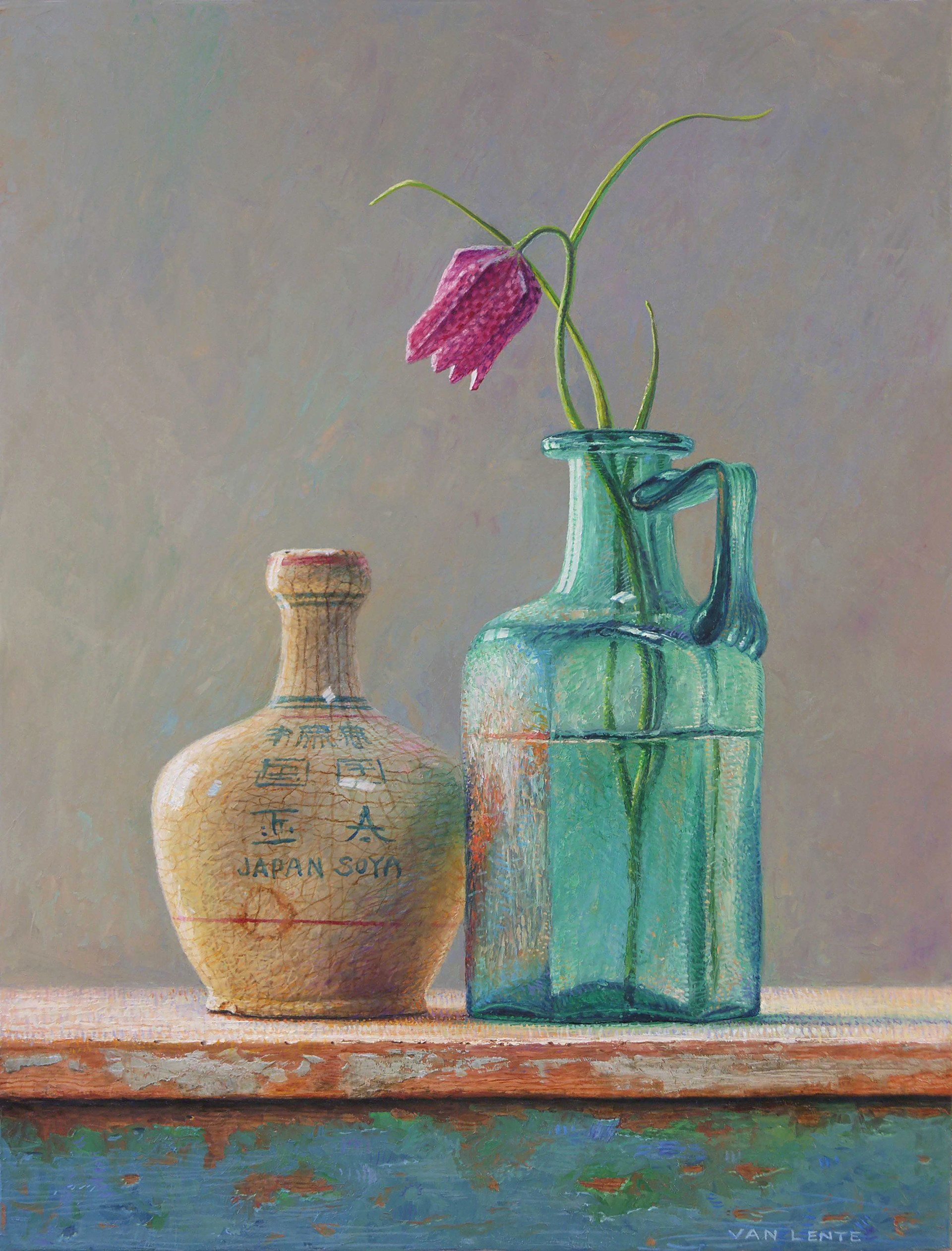 physalis en romeinse fles | olieverf paneel | 40 x 30 cm