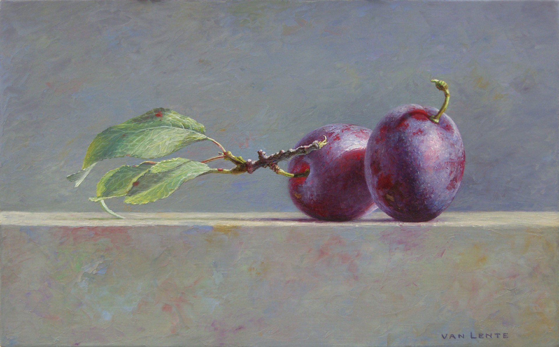 3 pruimen | olieverf paneel | 28 x 38 cm