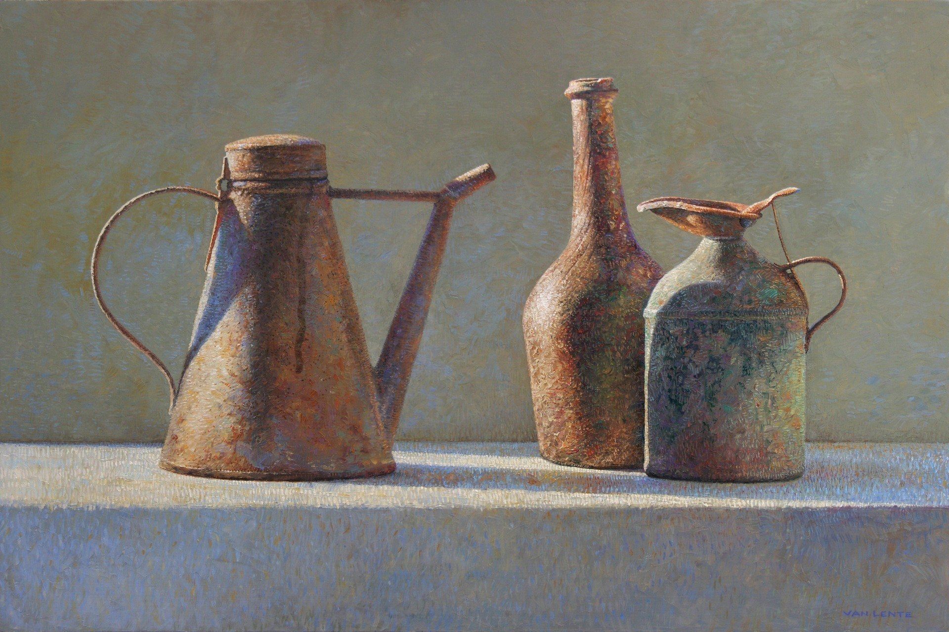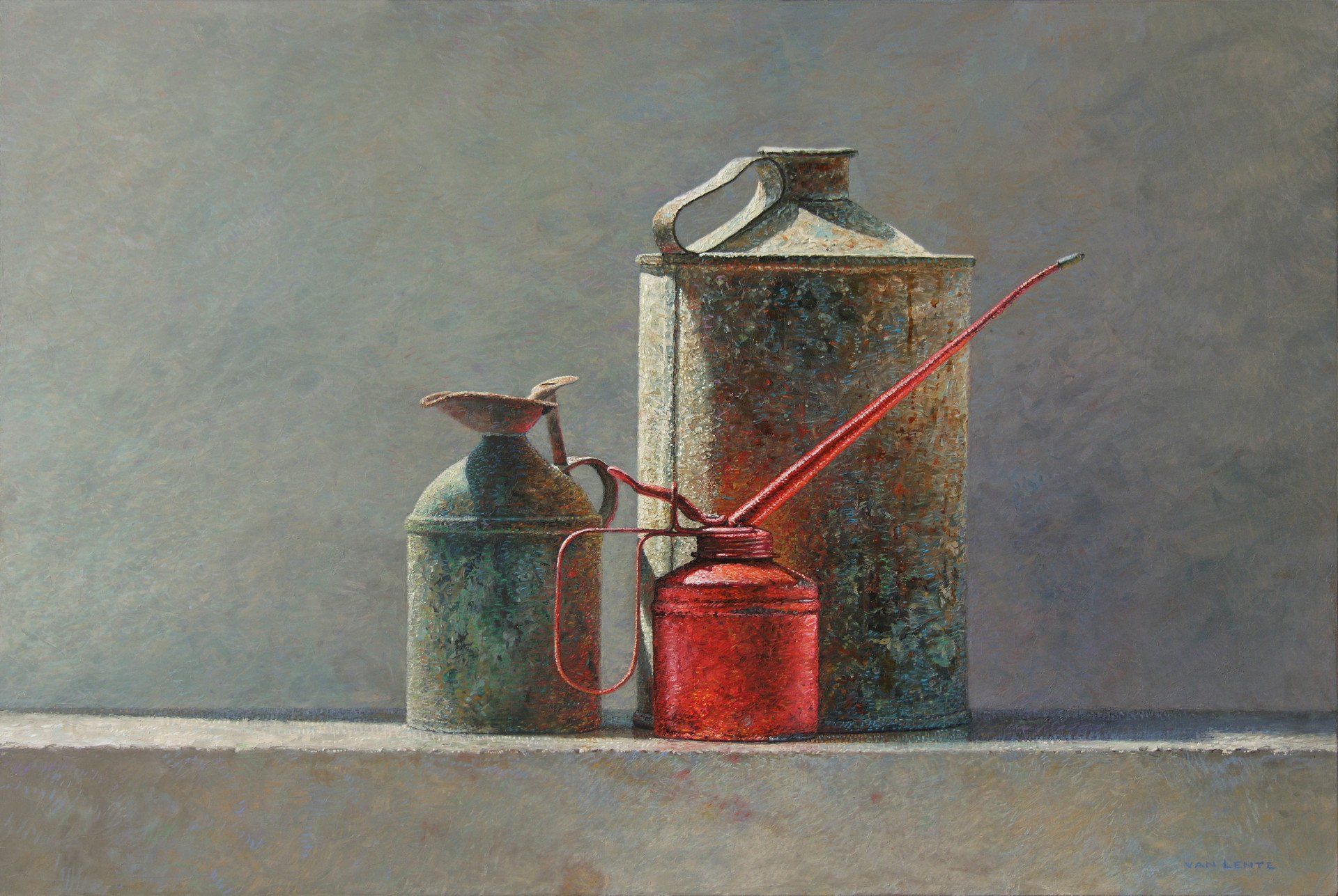 drie oliekannen | olieverf paneel | 40 x 60 cm