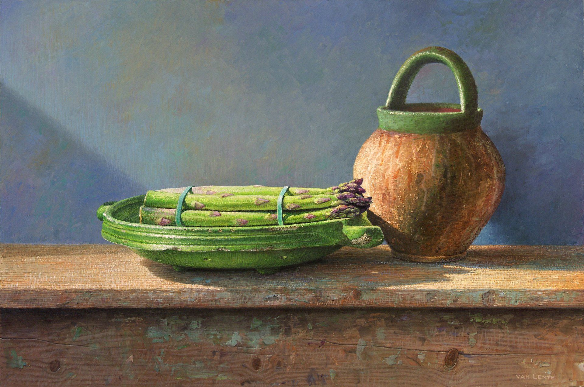 groene asperges en pot | olieverf paneel | 40 x 60 cm
