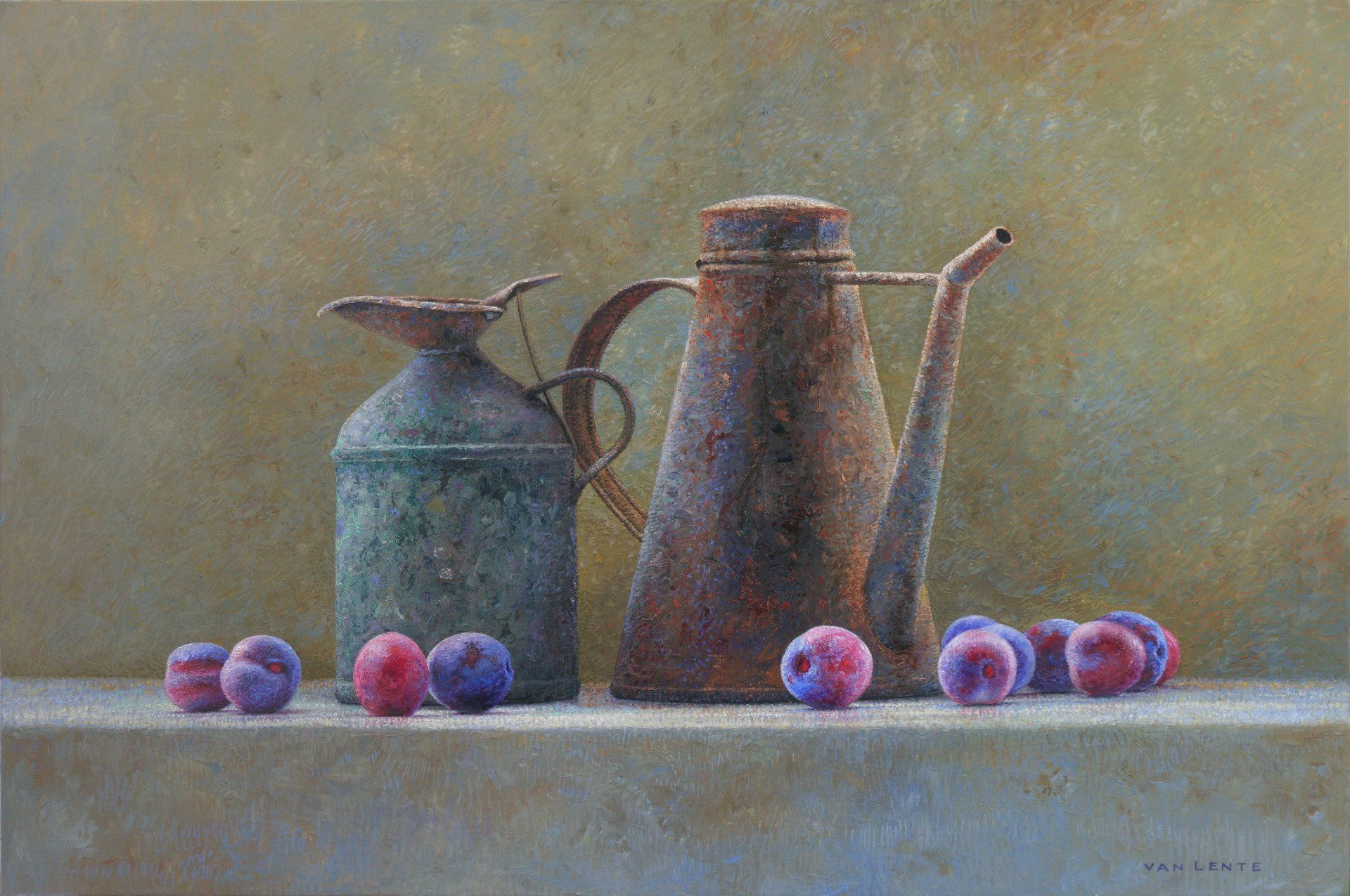 kannen en pruimen | olieverf paneel | 40 x 60 cm