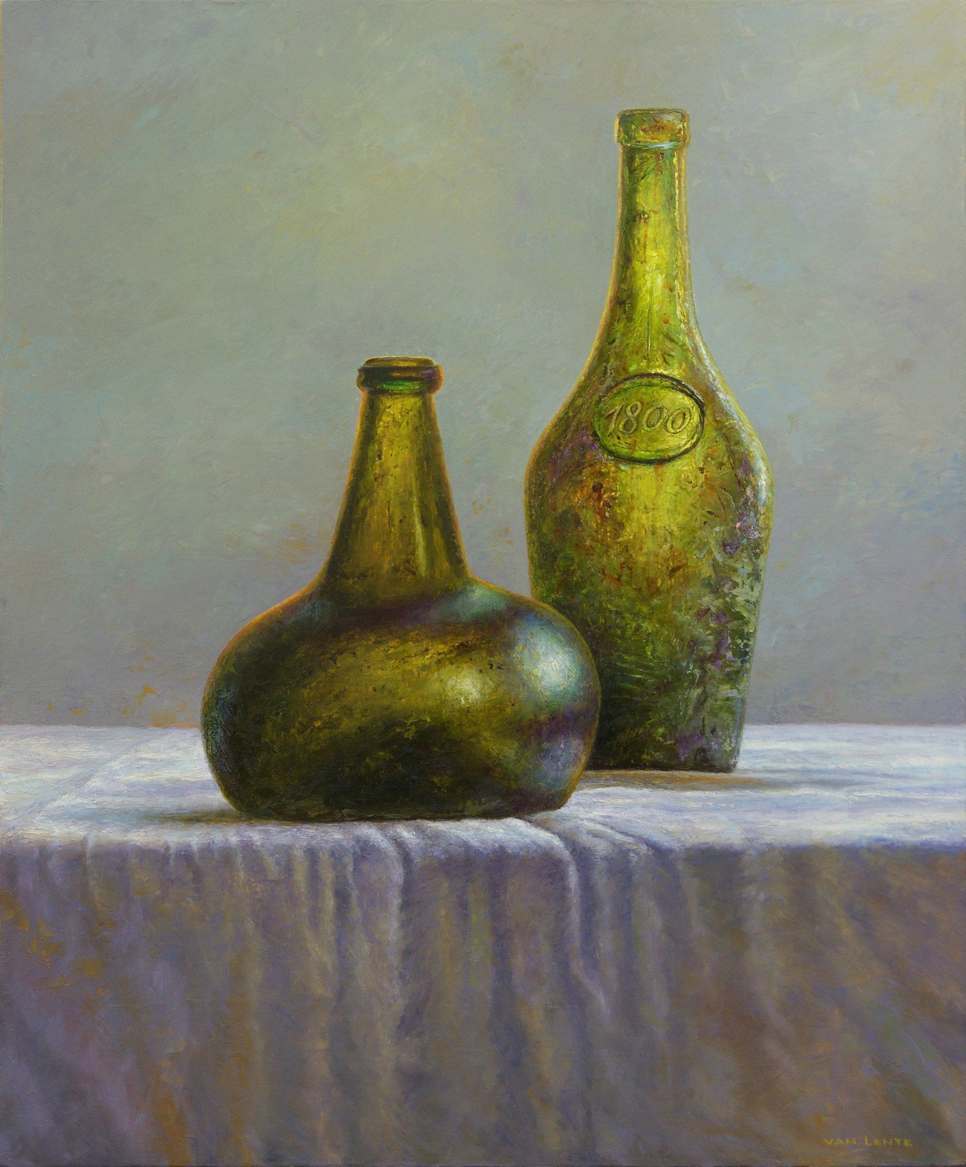 twee flessen | olie verf | 57 x 47 cm
